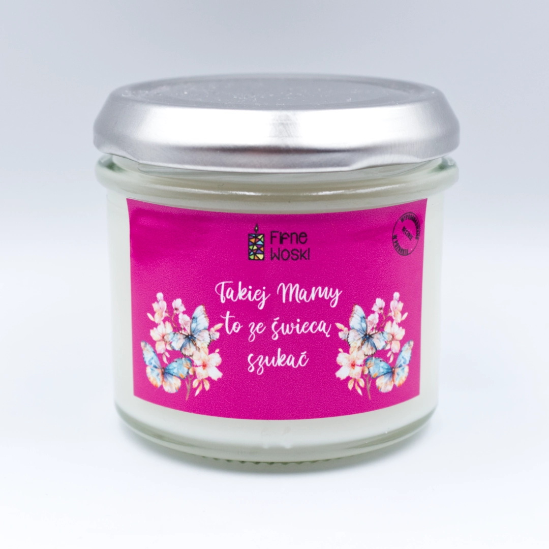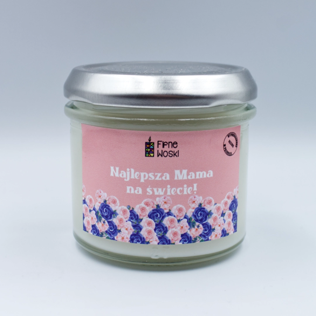 Świeca sojowa na Dzień Matki BRZOSKWINIA I PŁATKI RÓŻY to słoik o pojemności 135 ml, który zawiera co najmniej 100 ml wosku zapachowego.