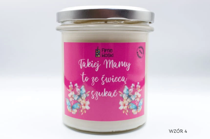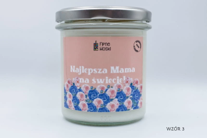 Świeca sojowa na Dzień Matki BRZOSKWINIA I PŁATKI RÓŻY to słoik o pojemności 350 ml, który zawiera co najmniej 300 ml wosku zapachowego.