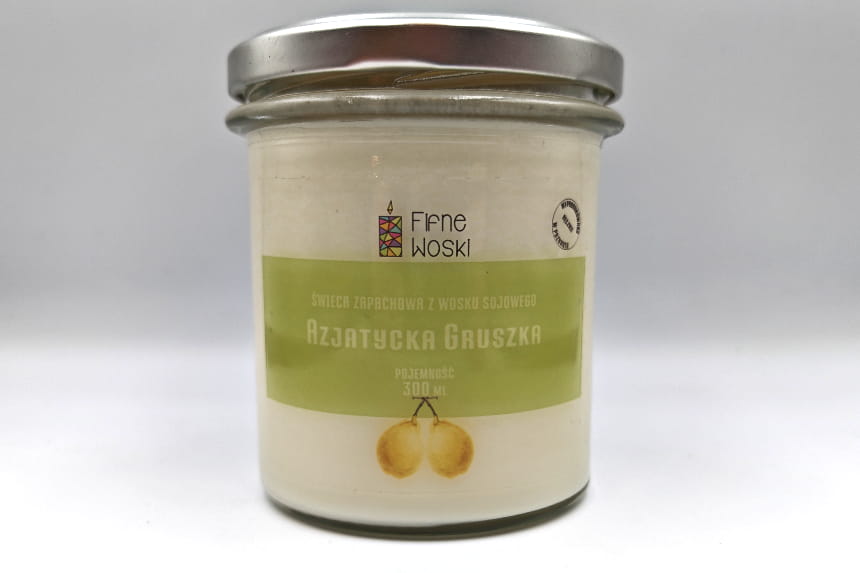 AZJATYCKA GRUSZKA to świeca sojowa marki Fifne Woski ręcznie rozlewana na poznańskim Łazarzu.