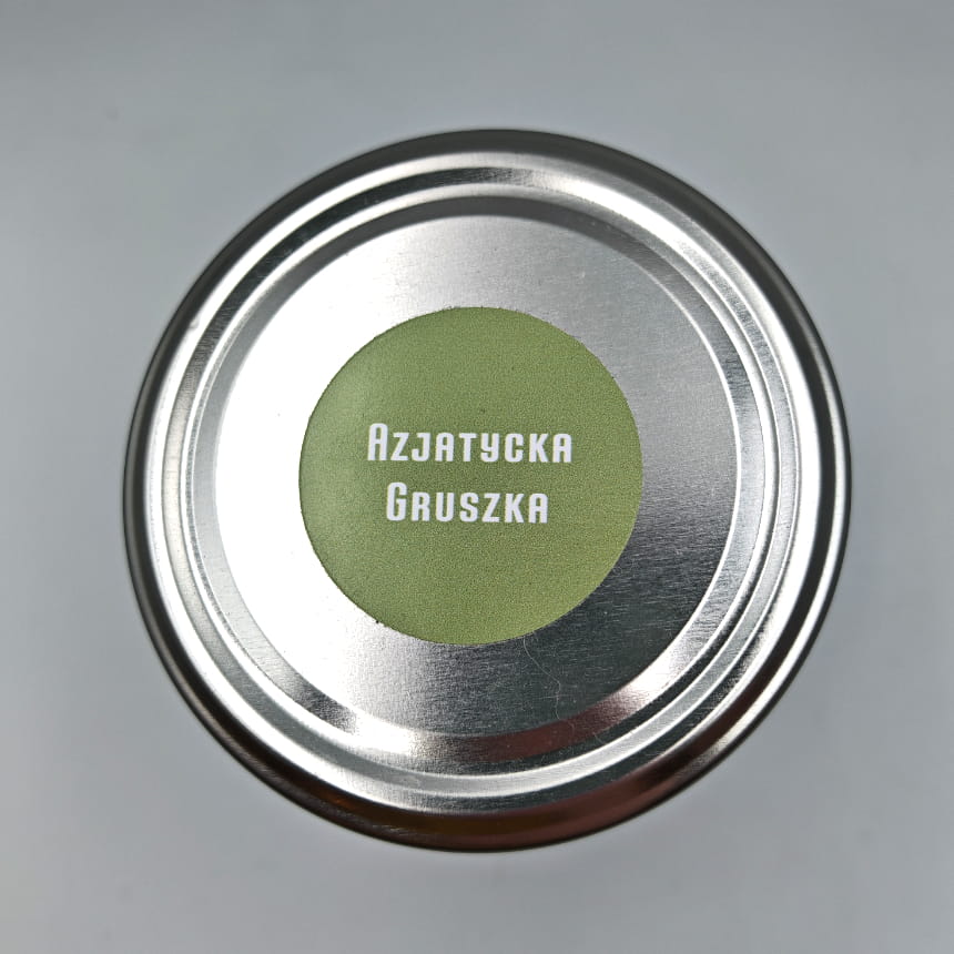 Świeca sojowa AZJATYCKA GRUSZKA w rozmiarze XL to słoik o pojemności 350 ml, który zawiera co najmniej 300 ml wosku zapachowego.