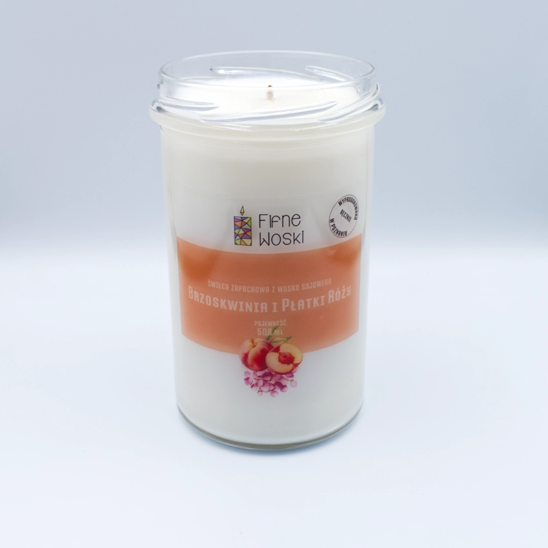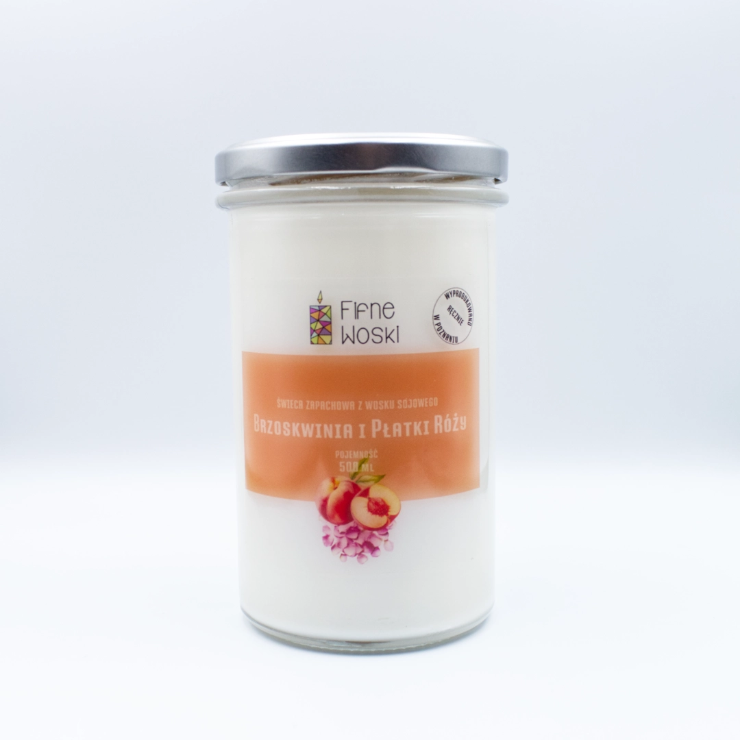 BRZOSKWINIA I PŁATKI RÓŻY - świeca sojowa 500 ml