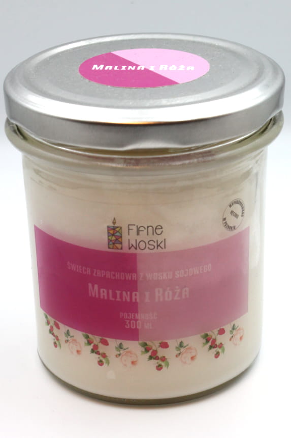 MALINA I RÓŻA to świeca sojowa marki Fifne Woski ręcznie rozlewana na poznańskim Łazarzu.