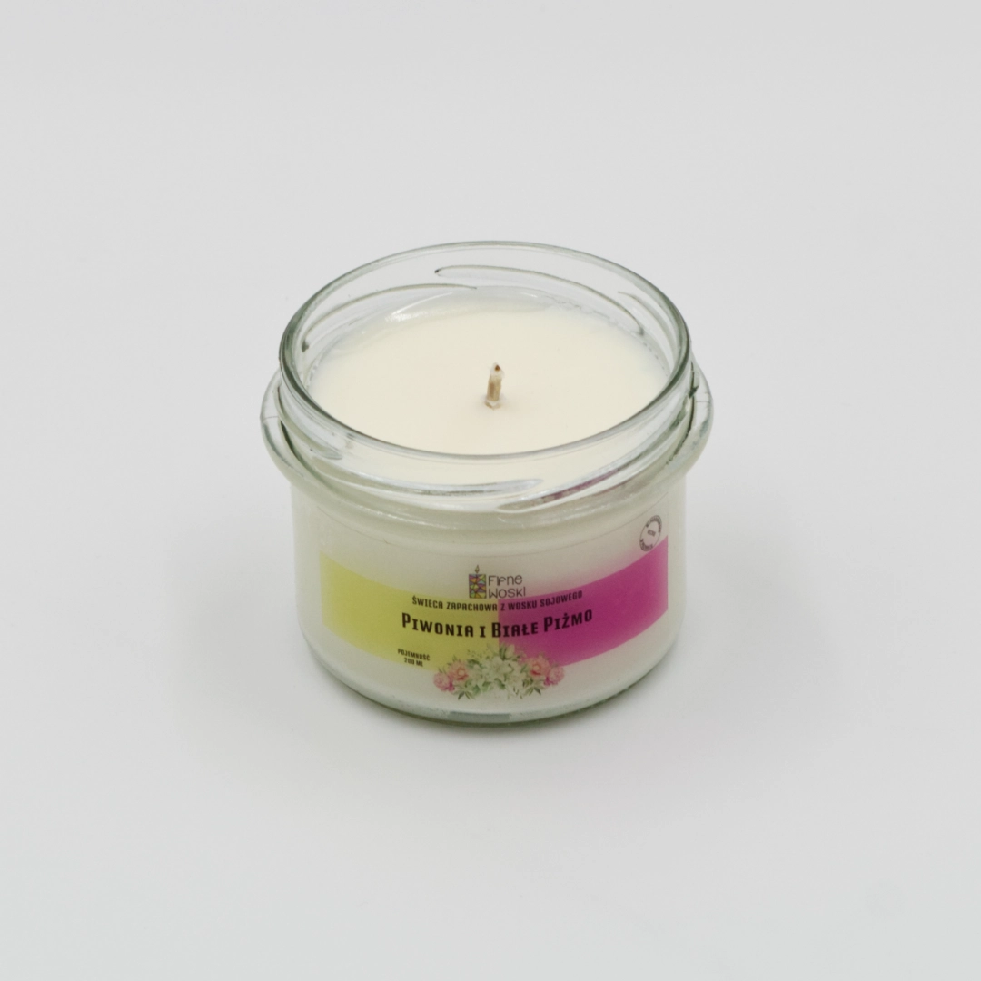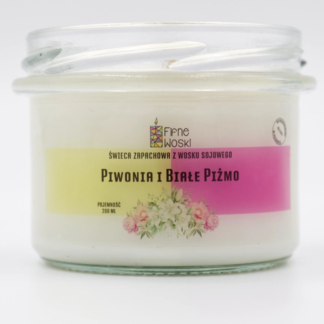 PIWONIA I BIAŁE PIŻMO - świeca sojowa 200 ml