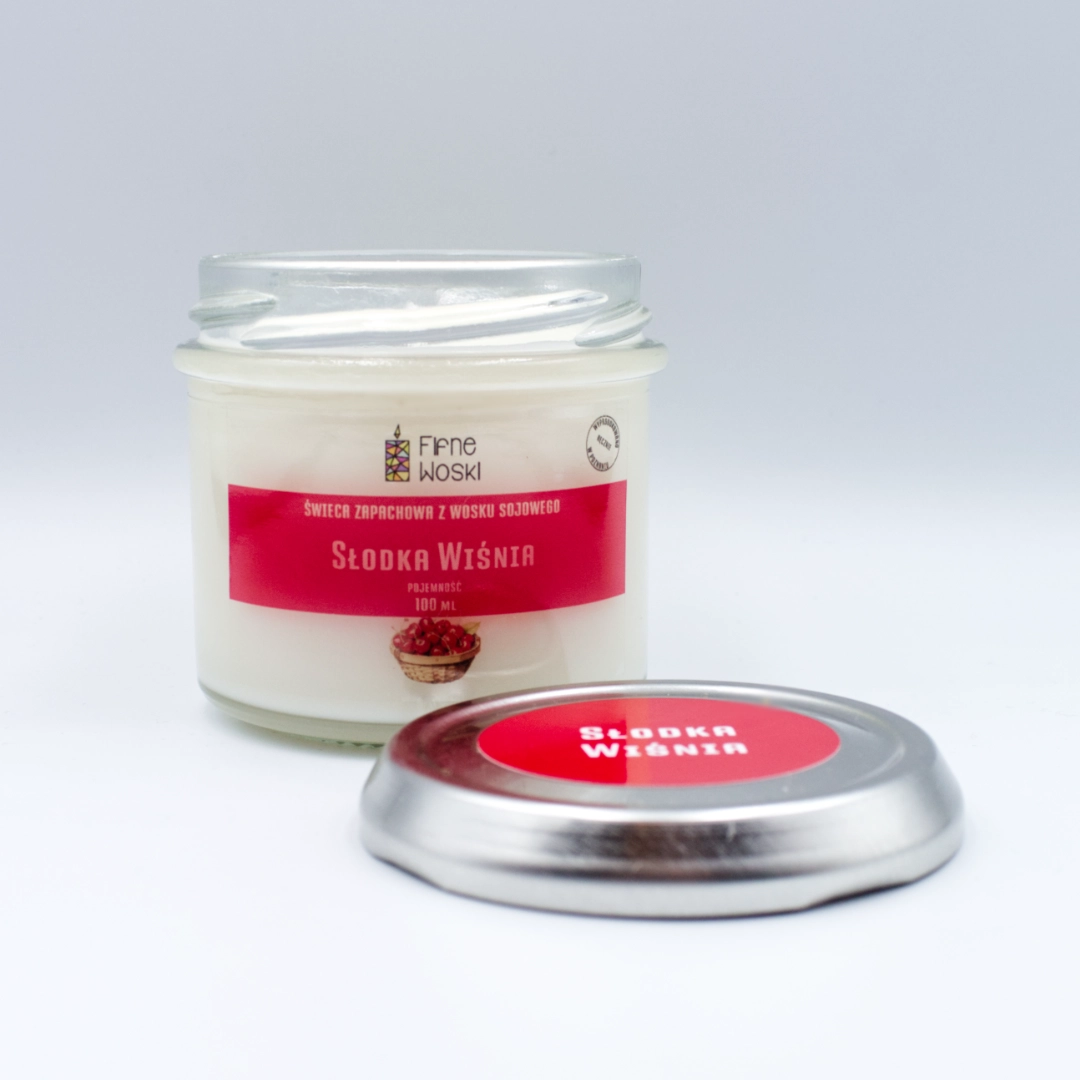 SŁODKA WIŚNIA to świeca sojowa marki Fifne Woski ręcznie rozlewana na poznańskim Łazarzu.