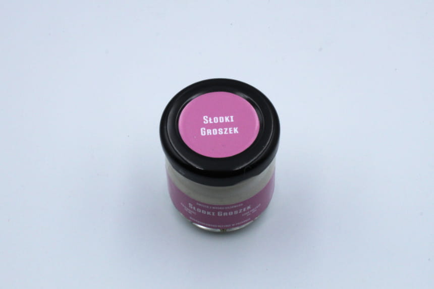 SŁODKI GROSZEK to świeca sojowa marki Fifne Woski ręcznie rozlewana na poznańskim Łazarzu.