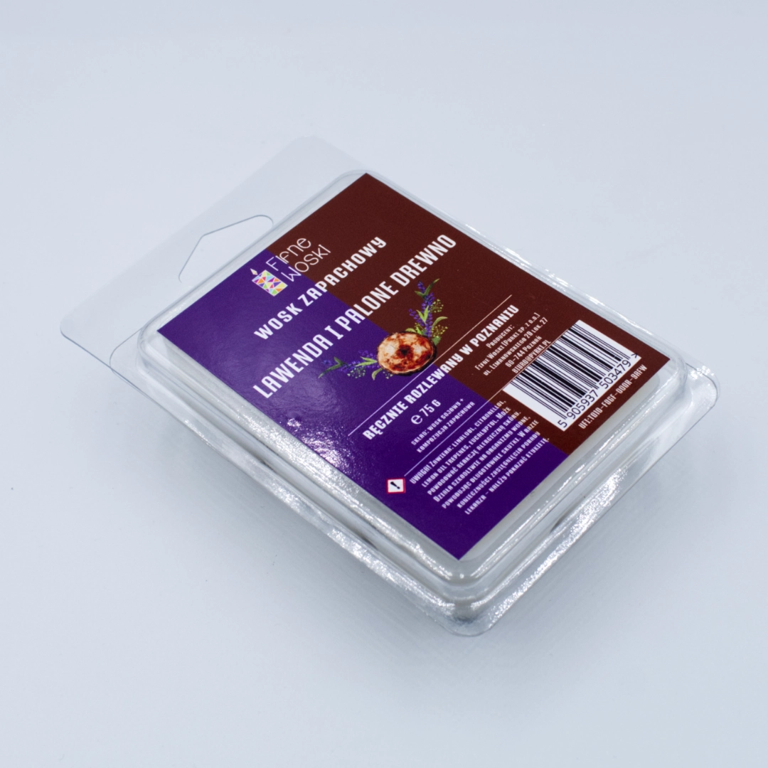 LAWENDA I PALONE DREWNO to nie mniej niż 75 g sojowego wosku zapachowego. Fifne Woski rozlewamy ręcznie na poznańskim Łazarzu.