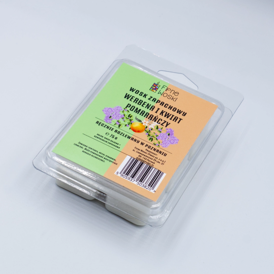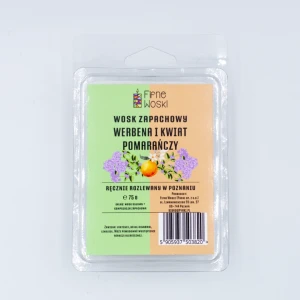 WERBENA I KWIAT POMARAŃCZY to nie mniej niż 75 g sojowego wosku zapachowego. Fifne Woski rozlewamy ręcznie na poznańskim Łazarzu.