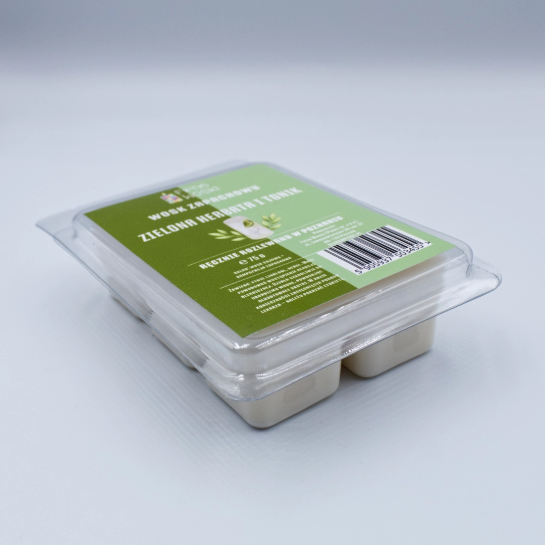 ZIELONA HERBATA I TONIK to nie mniej niż 75 g sojowego wosku zapachowego rozlewanego ręcznie na poznańskim Łazarzu.